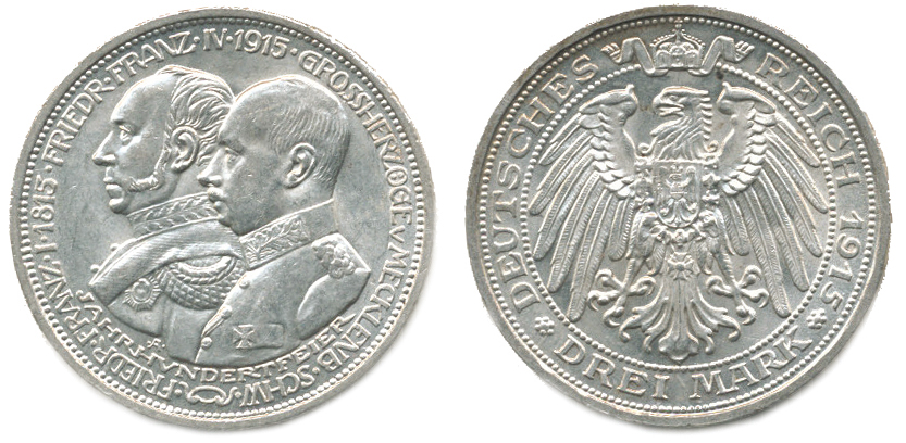3 Mark 1915 A - 100.výr. velkovévodství KM 340