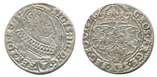 VI groš 1627 Krakov-Ligenza opis: SIGIS.III:D:G.().REX.POL.M:DL. Zag. 293,5; Kop.II/XII/5_mělčí ražba
