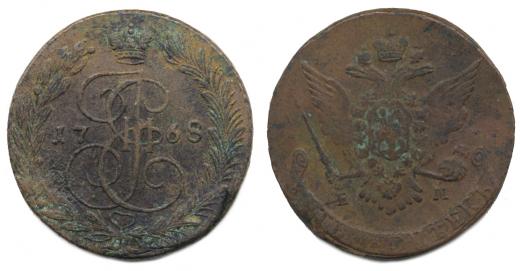 5 Kopějka 1768 EM, Jekatěrinburg Cr. 59,3_hr. ražbou