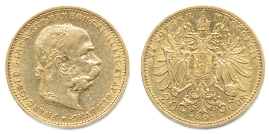 20 Koruna 1894 b.zn. /6,713.890 ks/