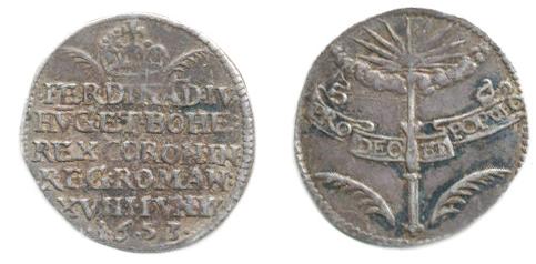 Korunovace na římského krále 18.6.1653 v Regensburgu Ag 18 mm Novák VIII/D/12b; H.2020 "RR"