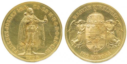 100 Koruna 1908 KB "pozdější ražba"