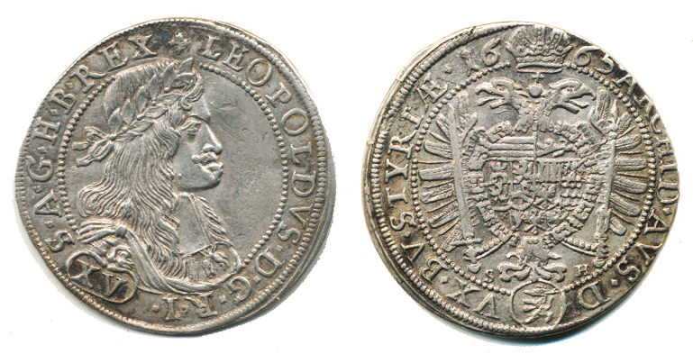 XV kr. 1665 S-H, Štýrsko Graz-Haydt Hol. 65.2.2 "R" _mírně exc. rv., tém.