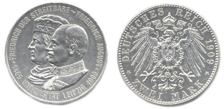 2 Mark 1909 - Univerzita Lipsko KM 1268 "R"_tém.
