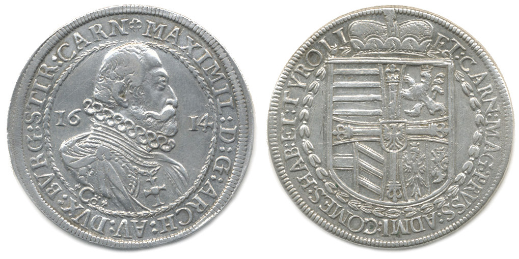Tolar 1614 Cö, Tyroly, Hall var. typu Voglh. 122/VII - poprsí i minc. zn. +Cö+ nepřerušuje okruží, opis: CARN_dr. škr.