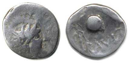 Ag denár, Hlava Romy v helmě vpravo / Blesk, globus, dole RAVI