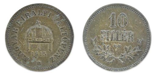 10 Fillér 1915 KB - bronzový odražek "RR"