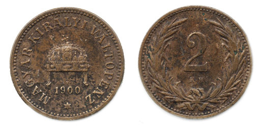 2 Fillér 1900 KB "RRR"