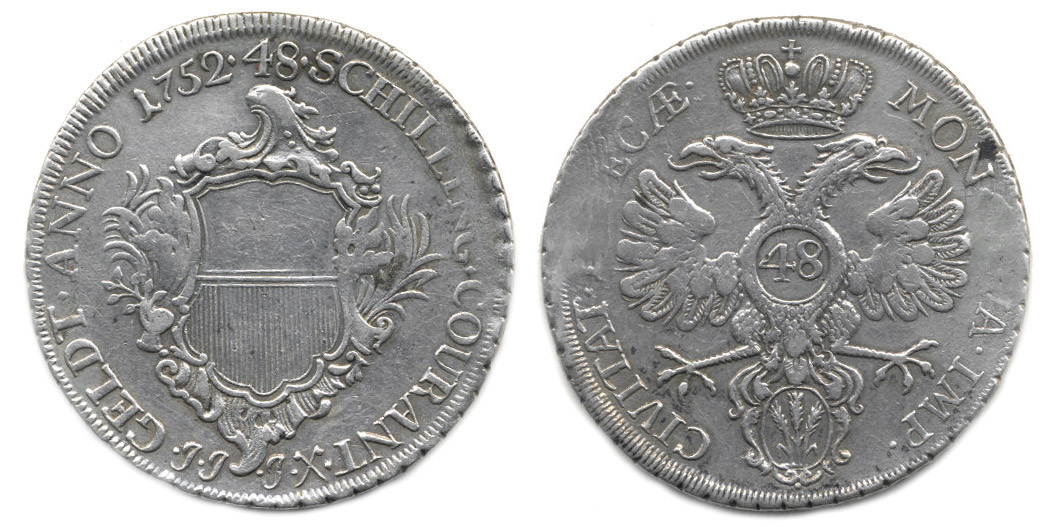 48 Shilling 1752 JJJ KM 168,5 Dav. 2420 _odstr. spona v rv., jinak