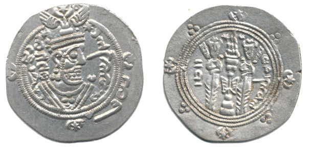Ag Drachma , Poprsí panovníka / Posvátný ohňový oltář boha Ahura Mazda mezi dvěma kultovními strážci (móbadové)