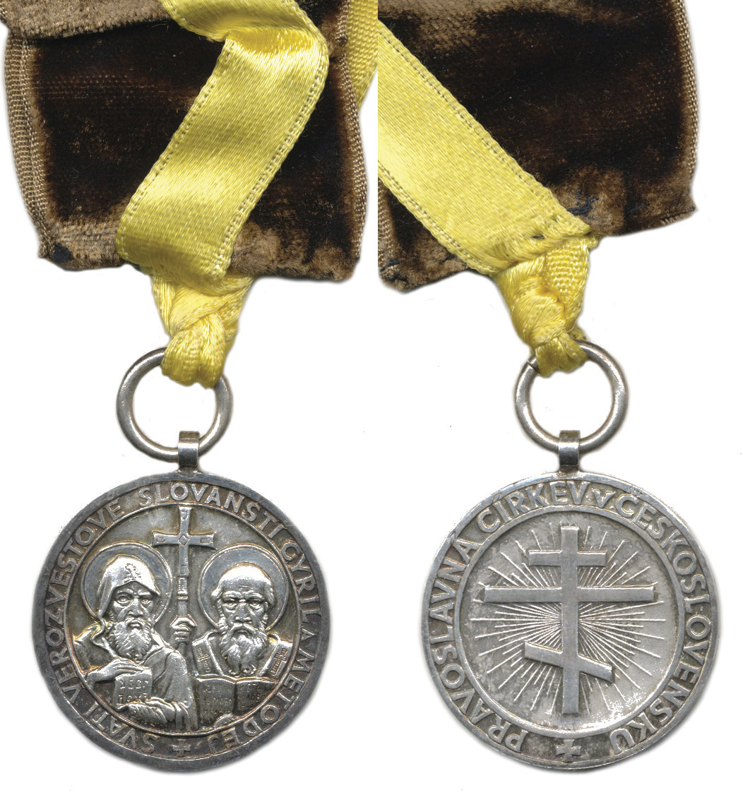 Řád "Sv. Cyrila a Metoděje" - V. třída, Ag medaile pro laiky (v ydání z let 1951-1981) etue_nepův. stuha