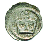 Haléř bez čtyřrázu - česká koruna v perličkovém kroužku, v otvore ch mezi liliemi hrotité výběžky Rad. I/25, Cast. 79 "RR" _tém.