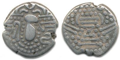 Drachma (Gadhaiya Paisa), stylizovaná hlava zprava / styliz. hoří cí oltář