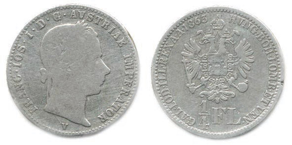 1/4 Zlatník 1863 V "RR" 5,17 g_otřelý portrét, hr.