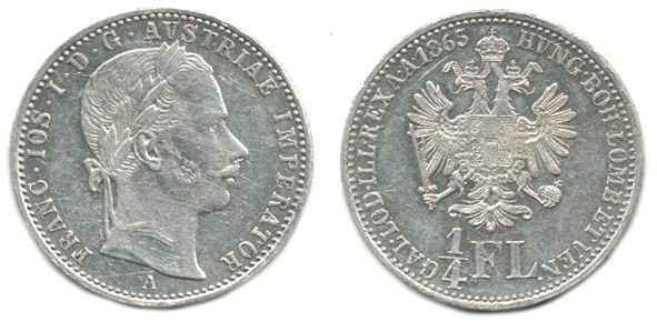 1/4 Zlatník 1865 A "RR"_vlas. rys.