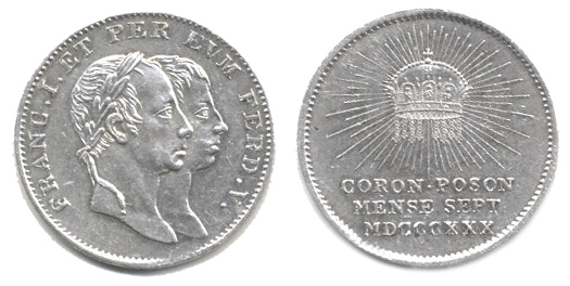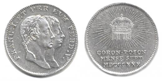 Malý žeton na uherskou korunovaci v Bratislavě 28.9. 1830 ...MENSE. SEPT Ag 20 mm Novotný III d