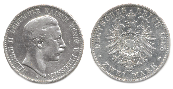 2 Mark 1888 A KM 511 "RR" (120-600 USD)
