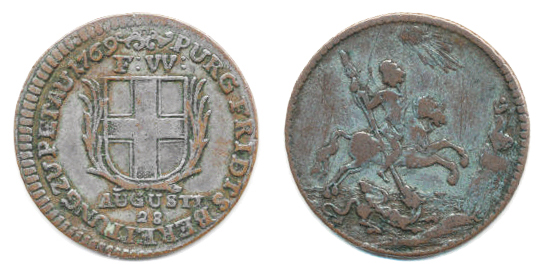 Pettau (Štýrsko) - Burgfriedbereitungsmünze 1769 von Franz Pettau (nyní Ptuj ve Slovinsku), erb a opis / sv. Jiří poráží draka Neumann 1247 Slg. Montenuovo 3304 "RR" Ag 21 mm