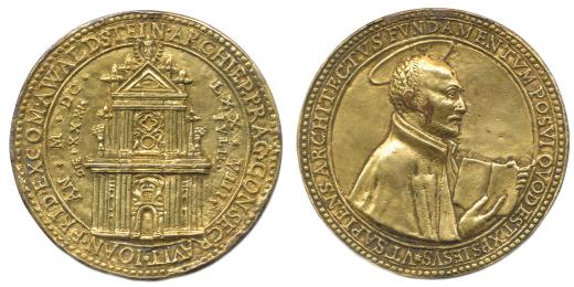 Svěcení kostela sv.Ignáce 31.7.1678 - poprsí světce zprava, opis / Průčelí chrámu, tři opisy, nesign. zlac. bronz 63 mm 44,31 8 g Donebauer 4637 "RR"