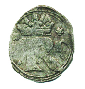 Malý (černý) peníz 1587, K.Hora-Šatný "RR" jako MKČ 385, ale p od datací kosočtverce