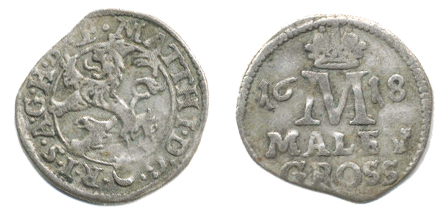 Malý groš 1618, Praha-Hübmer HN 2a "R"_kraj. stř., jinak