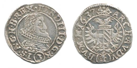 3 kr. 1637, Praha-Wolker MKČ 763 "sbírkový stav"