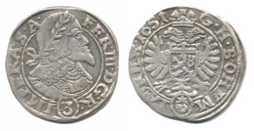 3 kr. 1651, Praha-Wolker jako MKČ 1181, ale minc. zn. v krou žku
