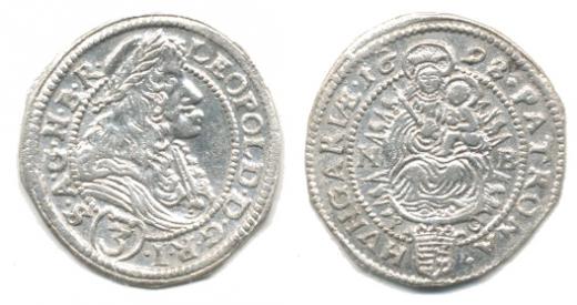 3 kr. 1698 NB / PO, Nagybanya Husz. 1470 var. opis: LEOPOL D. D.G.R.I. () S.A.G.H.B.R. "R" "pěkně válcov. mince"