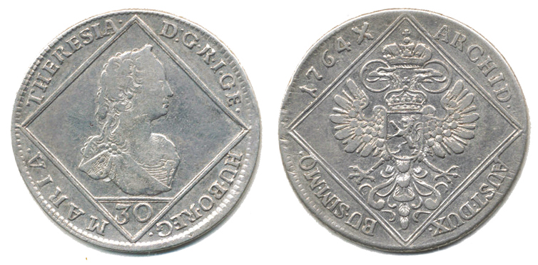 30 kr. 1764 b.zn., Praha "R"_tém.