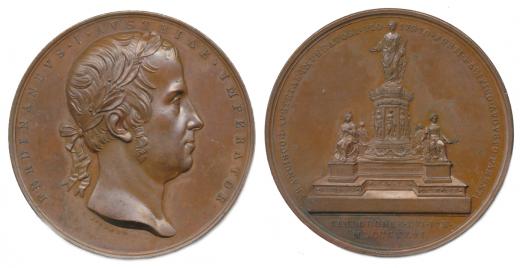 Medaile 1846, Odhalení pomníku Františka II. ve Vídni, Hlava císa ře zprava, opis / Pomník, opis, v ex. nápis sign.: K. Lange Cu 49 mm Mont. 2624; Würzb. 2042; Horský 3650