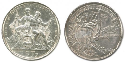 5 Francs 1883 - střelby Lugano KM S16
