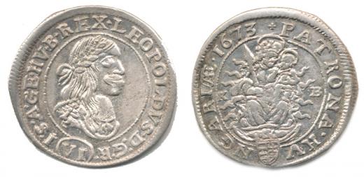 VI kr. 1673 KB var.: vpravo dva plameny "R" "krásně válcovaná mince !"