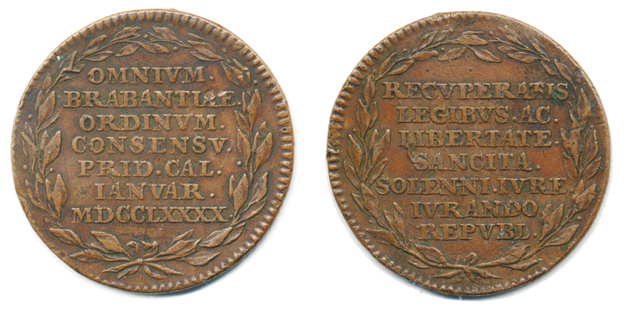 Jeton 1790, na odtržení Flander od Rakouska, 7-mi řádk. nápis ve věnci / 7-mi řádk. nápis ve věnci Cu 34 mm Mont. 2197; LG: XIV/1068; FW.II.11369 "R"