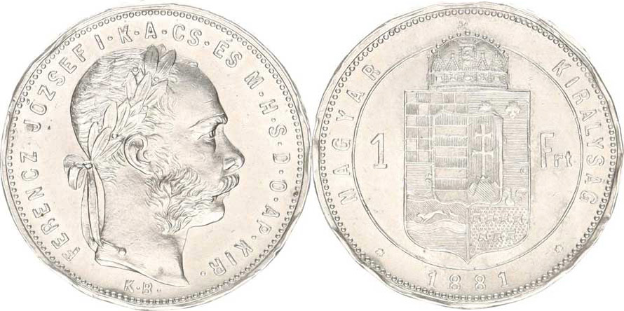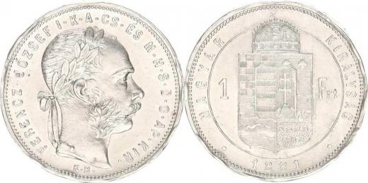 František Josef I.(1848-1918), Zlatník 1881 KB - úzký štít Mor. 87b, hry., jinak