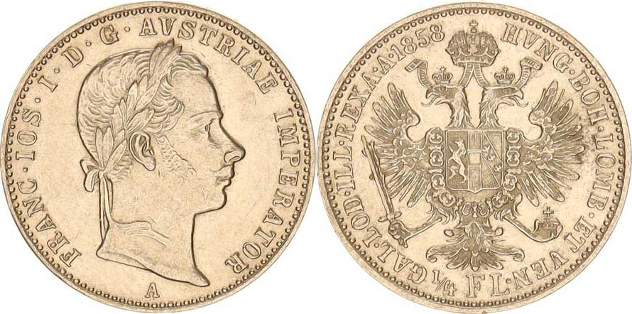 František Josef I.(1848-1918), 1/4 Zlatník 1858 A