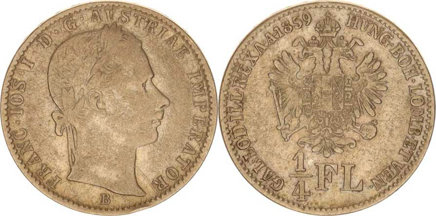 František Josef I.(1848-1918), 1/4 Zlatník 1859 B