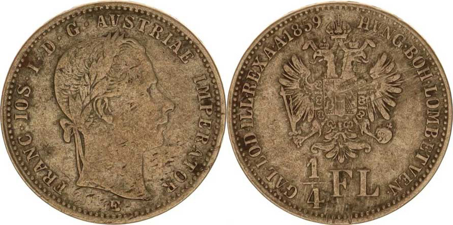 František Josef I.(1848-1918), 1/4 Zlatník 1859 E "R", just.