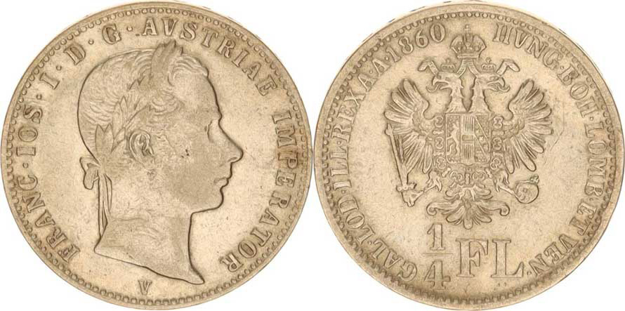 František Josef I.(1848-1918), 1/4 Zlatník 1860 V "R", tém.