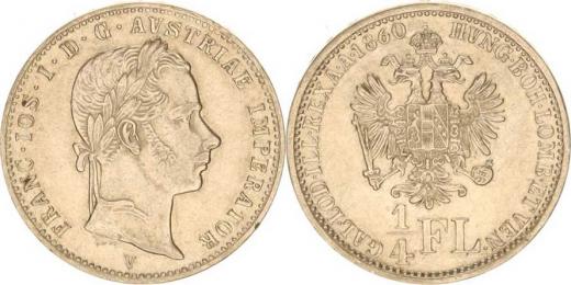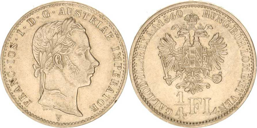 František Josef I.(1848-1918), 1/4 Zlatník 1860 V "R"