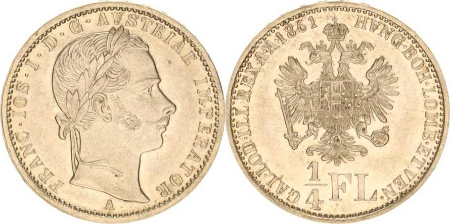 František Josef I.(1848-1918), 1/4 Zlatník 1861 A