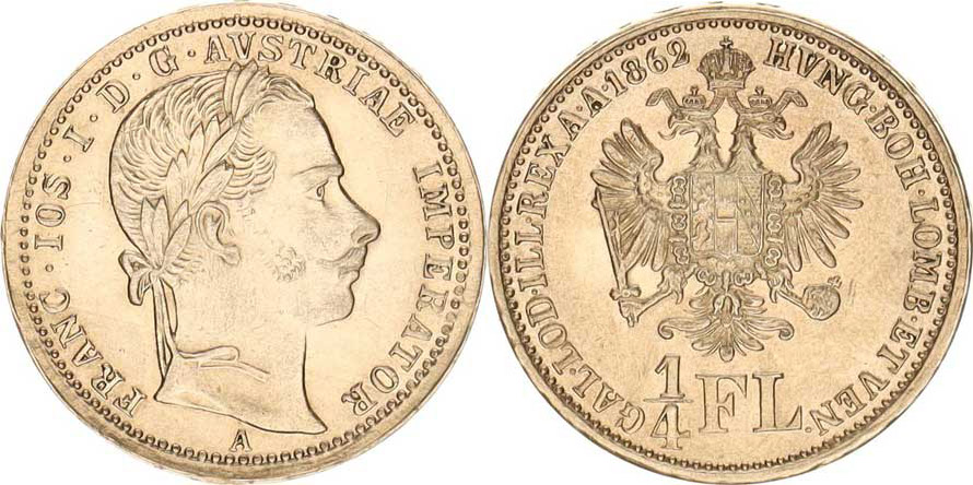František Josef I.(1848-1918), 1/4 Zlatník 1862 A