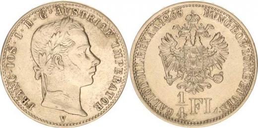 František Josef I.(1848-1918), 1/4 Zlatník 1863 V "RR"