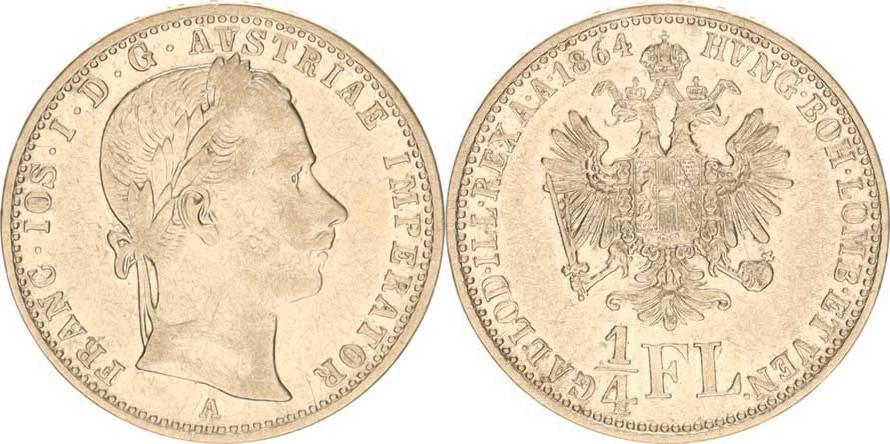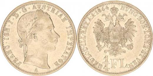 František Josef I.(1848-1918), 1/4 Zlatník 1864 A, tém.