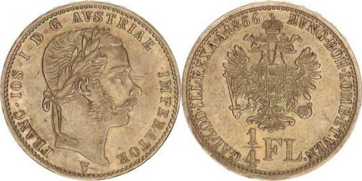 František Josef I.(1848-1918), 1/4 Zlatník 1866 V "RRRR" 5,291 g