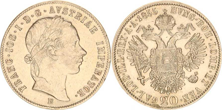 František Josef I.(1848-1918), 20 kr. 1855 B