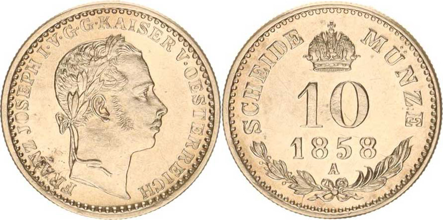 František Josef I.(1848-1918), 10 kr. 1858 A "R"