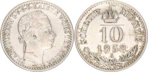 František Josef I.(1848-1918), 10 kr. 1858 A "R"
