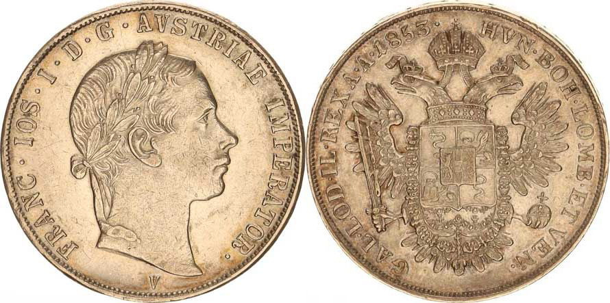 František Josef I.(1848-1918), 1/2 Scudo 1853 V "RR" 12,994 g