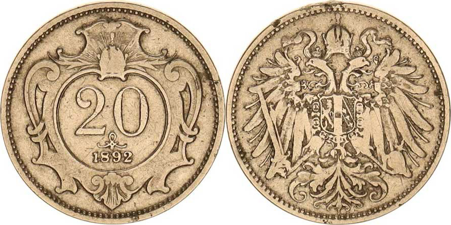20 hal. 1892 b.zn. "R", dr. hr.