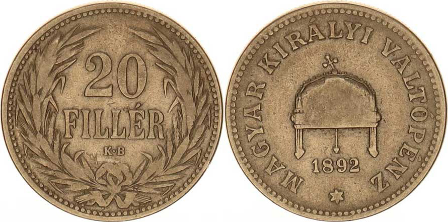 František Josef I.(1848-1918), 20 Fillér 1892 KB